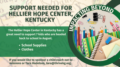Our friends at the Hellier Hope Center have shared that some families in their community are in need of clothing and school supplies as the new school year begins.